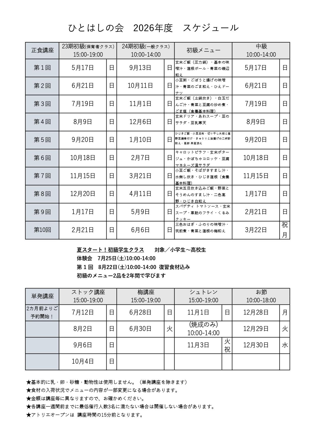 2026年度 初級・中級講座